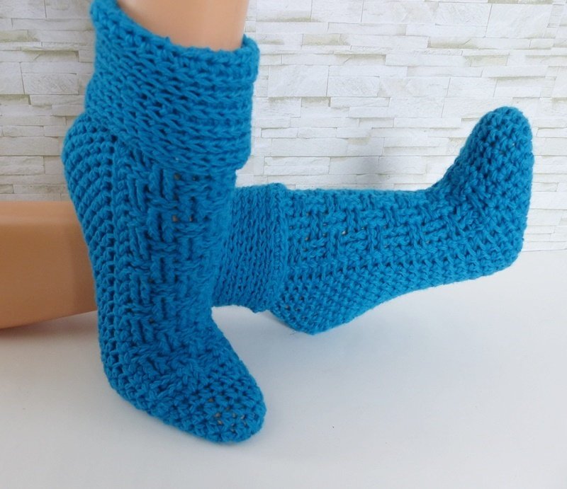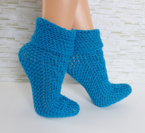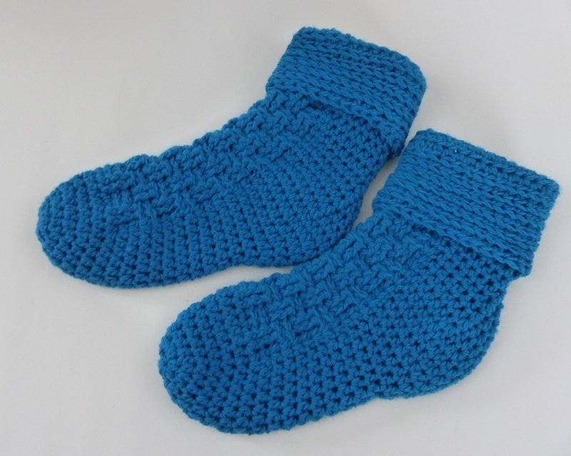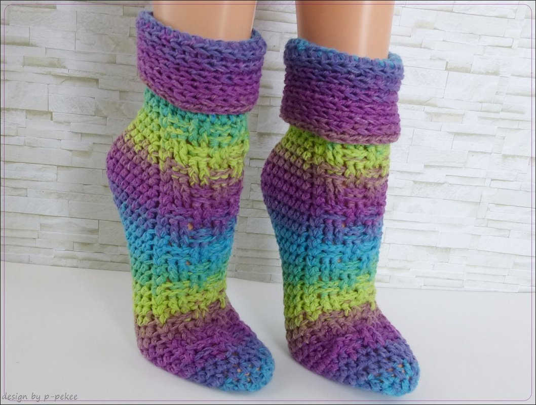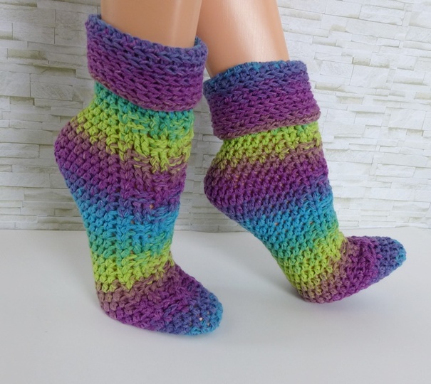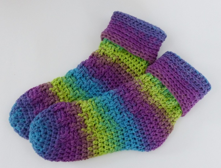 Wer möchte kann die Socken auch mit einem Baumwollgemisch häkeln. Dann kann man sie auch im Frühjahr / Sommer anziehen.