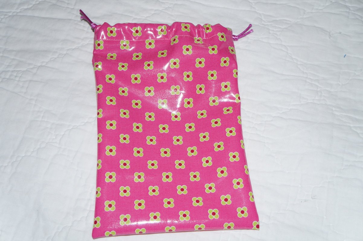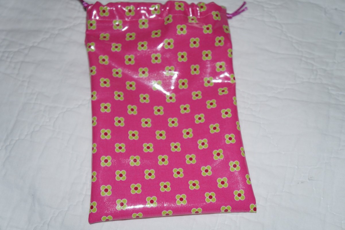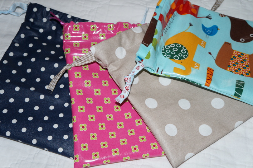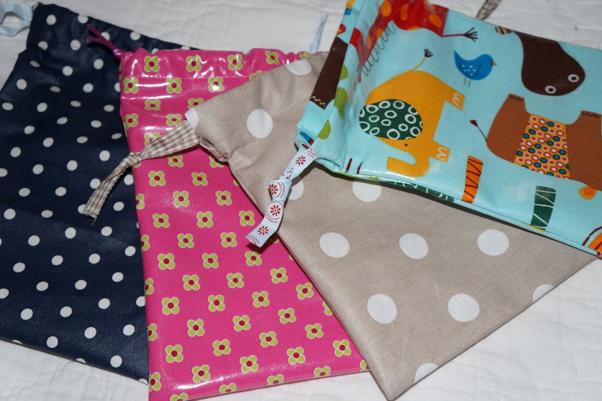 Die Stoffempfehlungen ergeben sich auch aus der Nähanleitung: Geeignet sind beschichtete Baumwollstoffe oder Wachstuchstoffe.