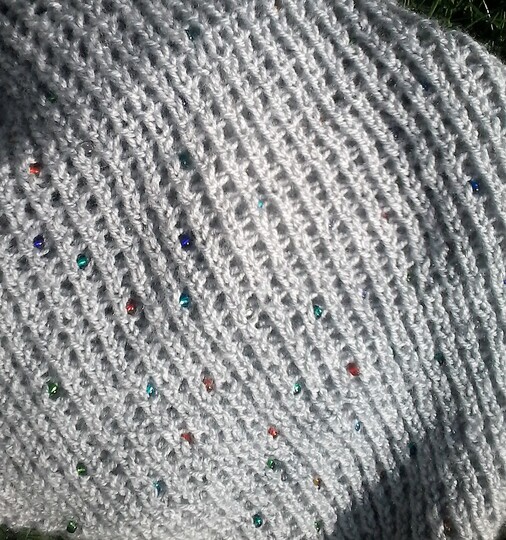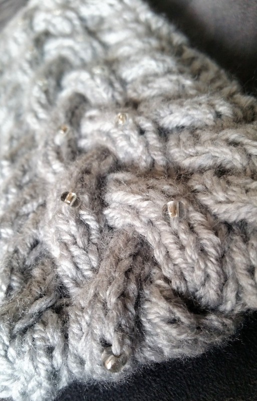 Wichtig: die Perlen müssen leicht über die Wolle gleiten, dürfen aber trotzdem kein zu großes Loch haben, da sie sonst zu sehr hängen.