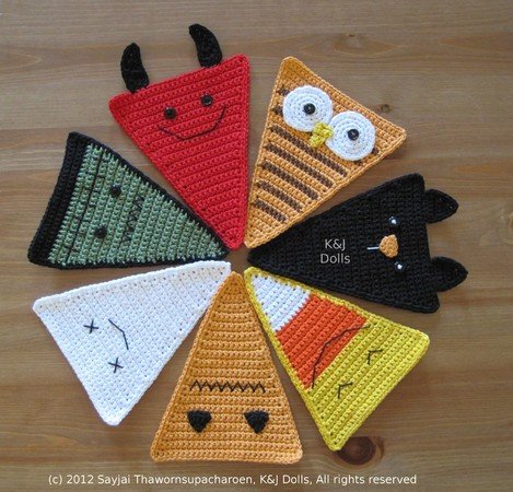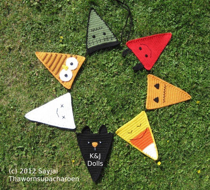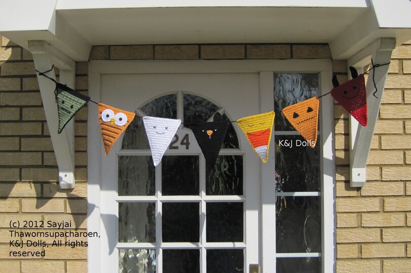 Anleitung zum Häkeln von kleinen Halloween-Wimpeln.