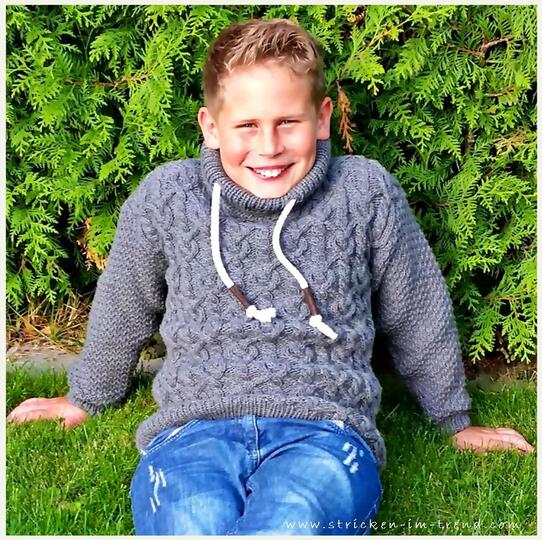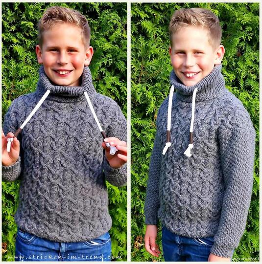 Die Zopfoptik ist immer in Mode und der Rollkragen mit den Kordeln bringt die Sportlichkeit mit!