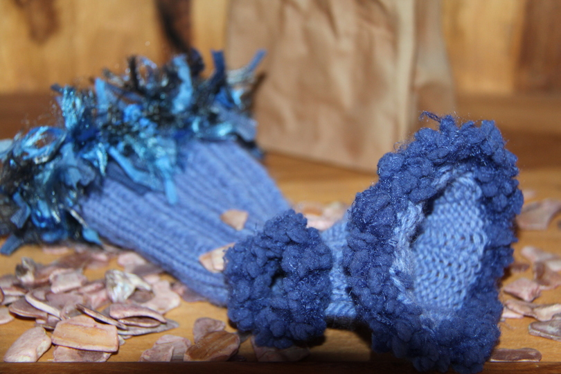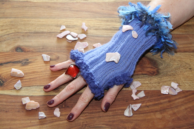 Diese Pulswärmer sind ideal zur Resteverwertung von Effektgarnen