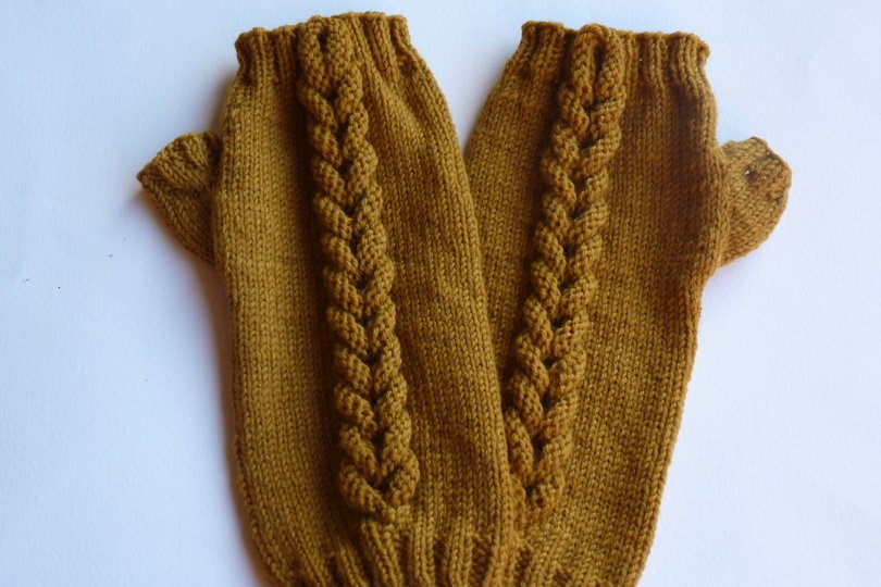 Dies sind Pulswärmer mit einem ganz besonderen Zopf,