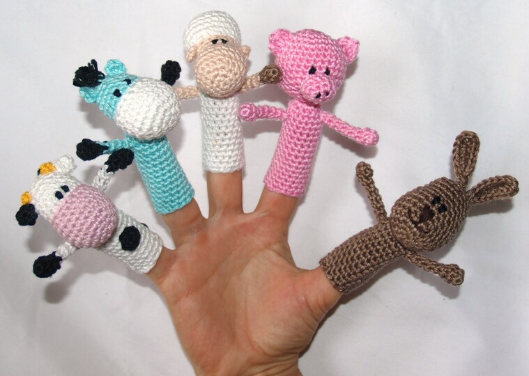 Schaf, Kuh, Schwein,Hase und Pferd als Fingerpuppen sind schnell selbst gemacht.