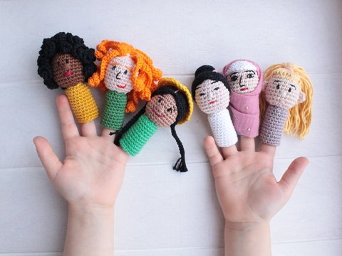 Die Puppen sind ca 9cm groß. Je nach Wollstärke können sie es kleiner oder größer werden.