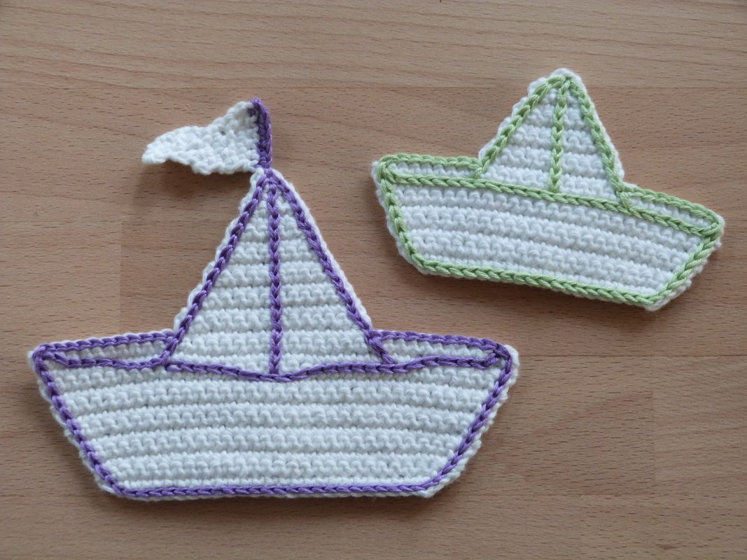 Häkelanleitung für "Papierschiffchen"-Applikationen in 2 Größen