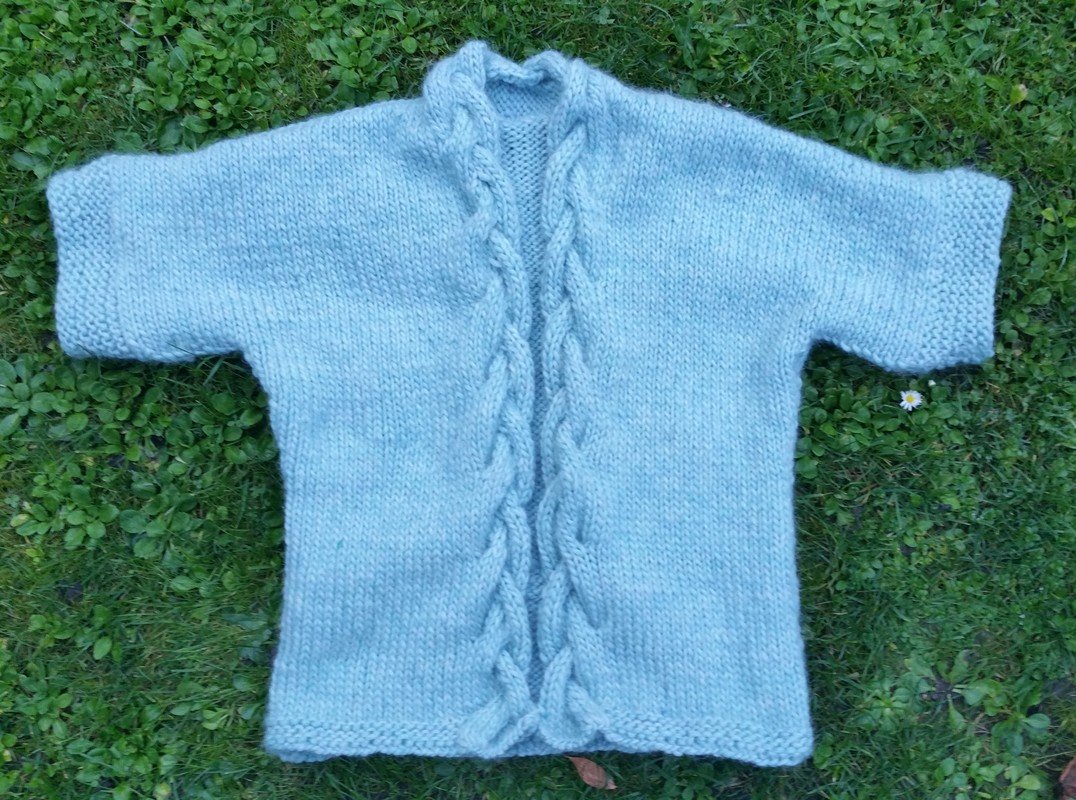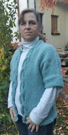 Material: 750g "Eskimo" von Drops -100% Wolle aber trotzdem kuschelweich 50 g mit einer Lauflänge von 50m Rundstricknadel Nr. 8 und 9, Häkelnadel Nr. 5 Wollnadel, Stecknadeln, Maschenmarkierer, Hilfsnadel für das Verzopfen, Wollrest für stillzulegende Maschen