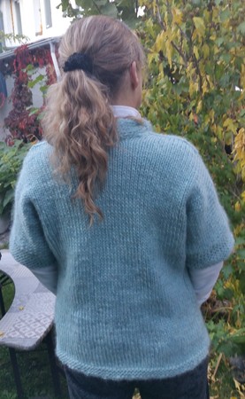 Ihr erhaltet hier drei passende Anleitungen: eine Kurzarmjacke, ein Stirnband und ein weicher Schal. Schnell gestrickt mit der dicken Wolle und doch ausgefallen in der Gestaltung.