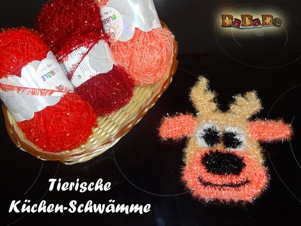 Schwamm Rentier, für Weihnachten, Bad und Küche, gehäkelt von Dadade