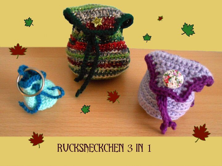 Die Rucksäckchen eigen sich prima für kleine Geschenke, die Anleitung beinhaltet alle 3 Größen der Rucksäckchen.