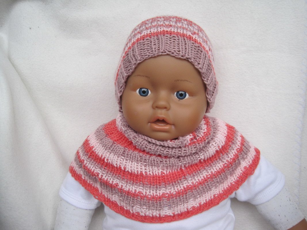 Diese Strickanleitung Poncho + Mütze in 2 Größen ist tragbar von 0-6 Monaten und von 6 Monaten bis ca. 12 oder 14 Monate. Manche Babys/Kleinkinder wachsen ja nicht ganz so schnell oder sind schmal gebaut.