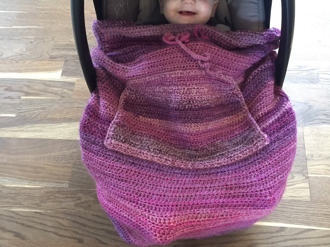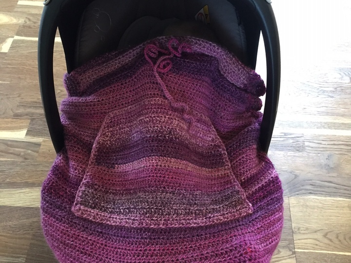 Und da das Cover von der Form her so bemessen ist, dass es auch prima über den MaxiCosi gezogen werden kann, hat es auch noch einen Zweitnutzen als wärmendes Babyschalen-Cover.