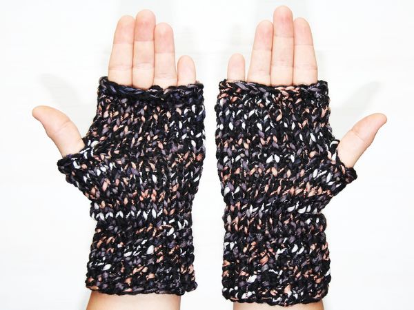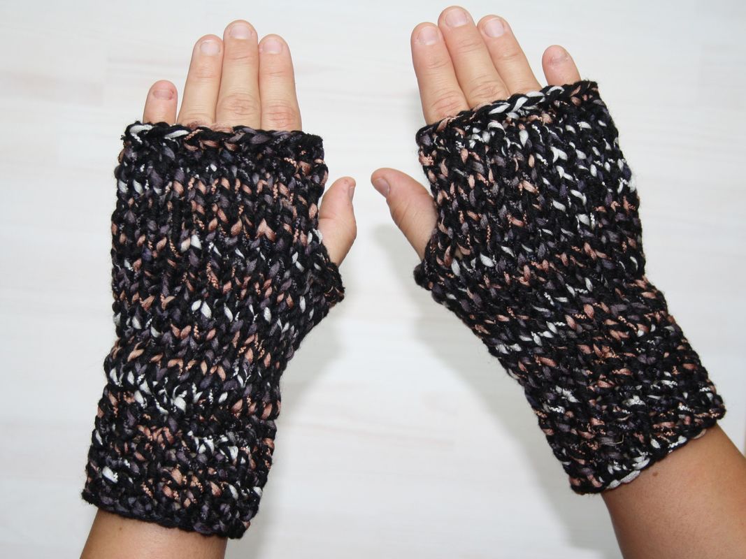 Die Bündchen sind gehäkelt und deshalb schön kompakt, die Handteile sind geknookt und dadurch leicht und kuschelig!