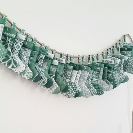 Ein schöner traditioneller Adventskalender. 24 Socke zum Befüllen mit kleinen Überraschungen lassen die Zeit bis Weihnachten im Flug vergehen.