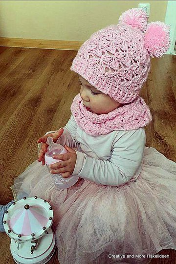 Kleine Mädchen und Blumenmuster gehören einfach zusammen, ebenso die Farbe Rosa...... Die Mütze und der Loop mit dem blumigen Muster sind ein absolutes Must-Have für jede kleine Prinzessin.