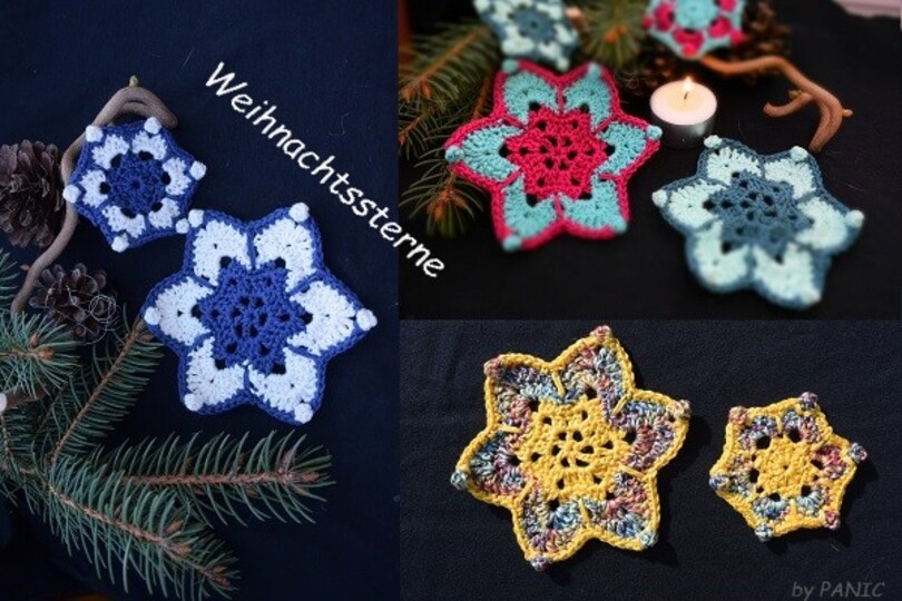 Hinweis: Beim vorgestellten Produkt handelt es sich NICHT um fertige Weihnachtssterne, sondern um eine Schritt-für-Schritt-Häkel-Anleitung, die Dir hilft, eigene Weihnachtssterne zu fertigen. Du hast Fragen? Bitte melde Dich per Email bei mir!
