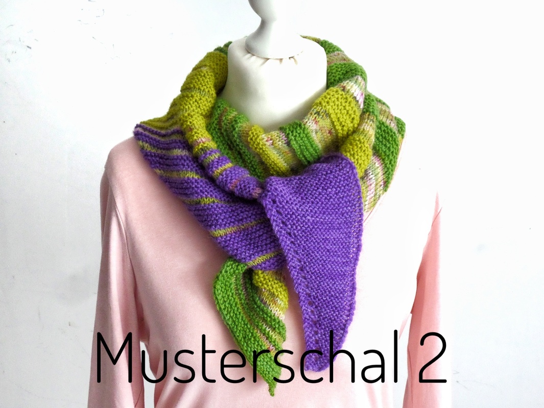 Musterschal 2 (grün) wurde aus 4 Farben gestrickt.