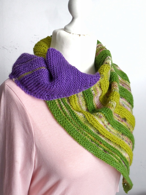 So ist er auf verschiedene Weise zu tragen: Offen über der Schulter, eine Spitze unter gesteckt oder -meine Lieblingsversion- die Zipfel vorn verknotet.