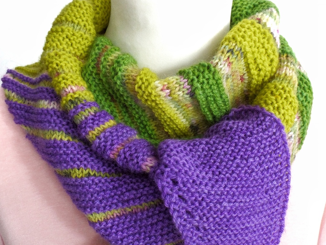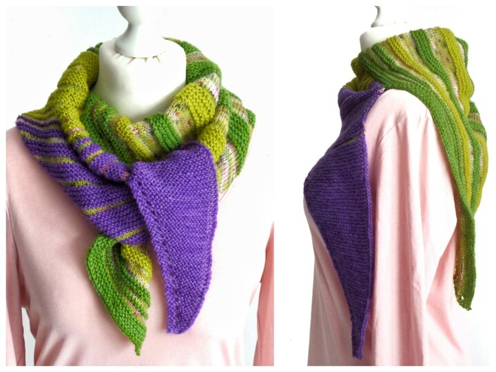 Ich beschreibe die grundsätzliche Strickweise und die Art des Faltens mit der Naht genau in Wort und Bild. Meine beiden Musterschals haben eine unterschiedliche Streifenabfolge, beide Versionen findet Ihr ausgeschrieben zum nachstricken.