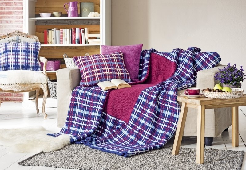 Für das blau-karierte Kissen Größe: circa 55 x 36 cm