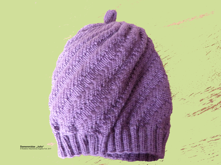 Die Mütze kann mit Merino-Garnen (Lauflänge ca. 125 m/50 g) verschiedener Marken auf diese Weise nachgearbeitet werden. Und wer mehr "Beanie" möchte, strickt einfach 2-4 cm länger. Die 100 g Wolle reichen dann immer noch aus.