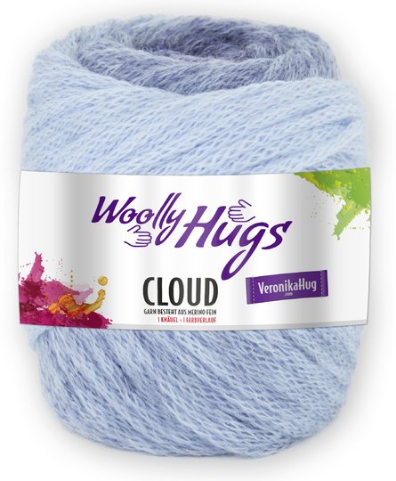 100 g / 1 Knäuel Blau coloriert (Farbe 181) „Woolly Hugs CLOUD“ (94% Merino fein, 6% Polyamid, LL = 300 m/100 g) von Langendorf & Keller (VeronikaHug.com)