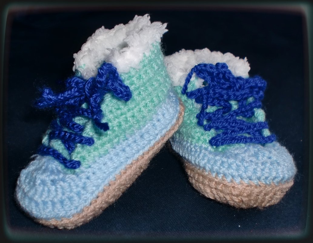 Die Größe die ich gehäkelt habe ist für Schuhgröße 18/19.