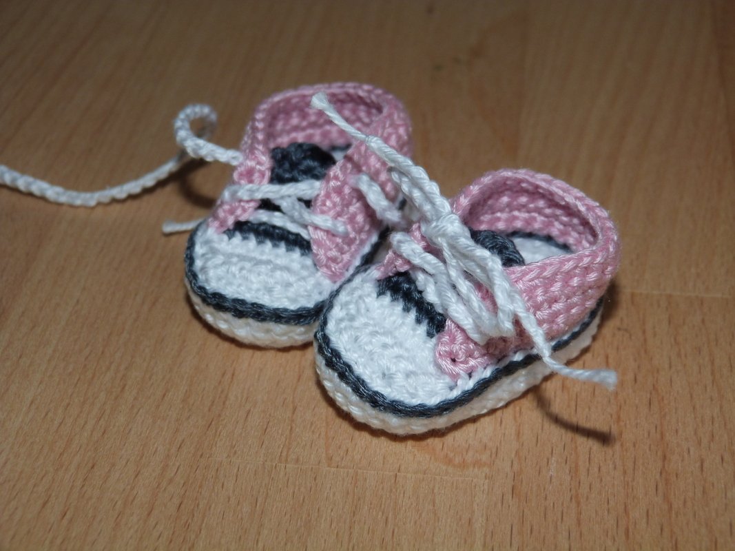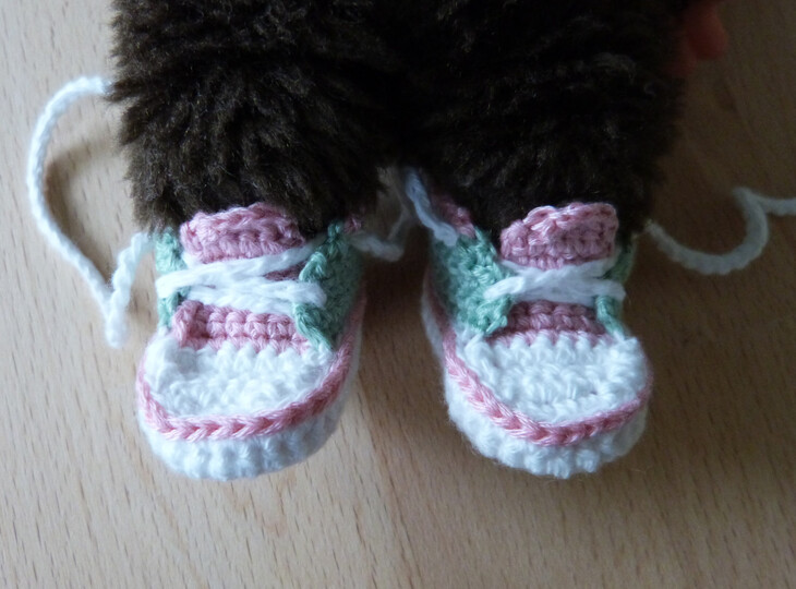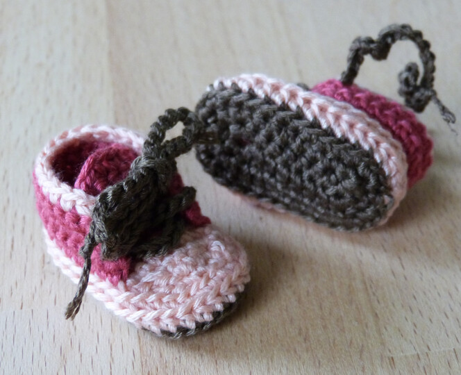 Häkelanleitung für ein Paar winzige Puppen-Turnschuhe! Die Schühchen sind gar nicht so schwer zu häkeln und sind eine Freude für jede Puppenmama...