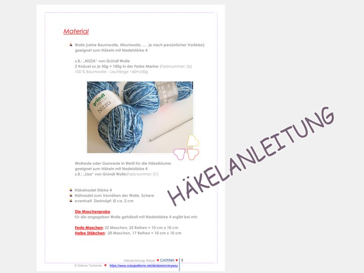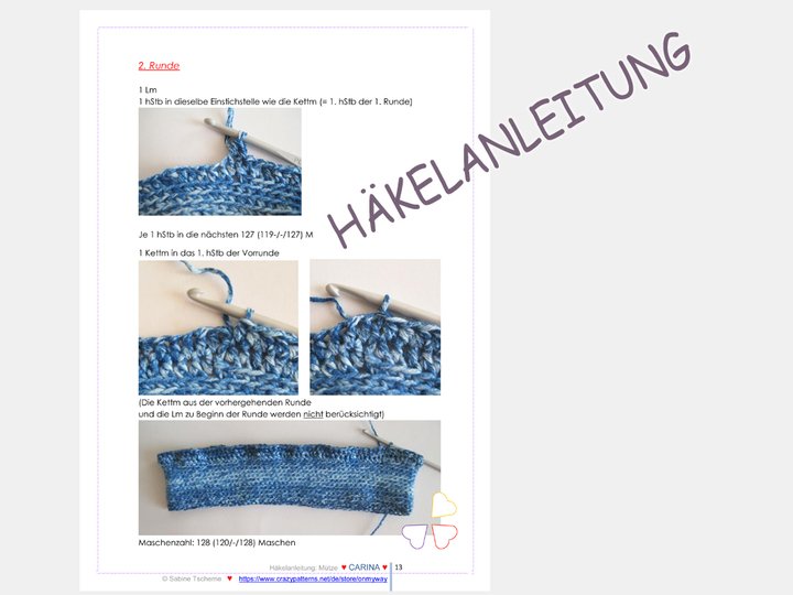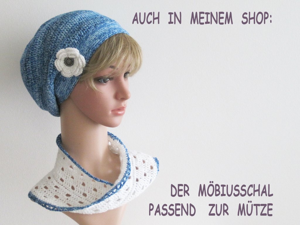 ♥ Wenn Du passend zur Mütze CARINA einen Möbiusschal selber häkeln willst: Die Häkelanleitung für den Möbiusschal CARINA findest Du in meinem Shop!