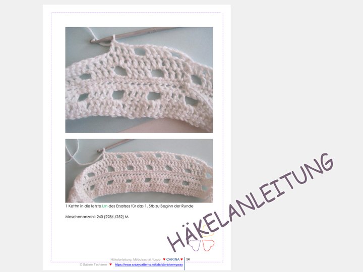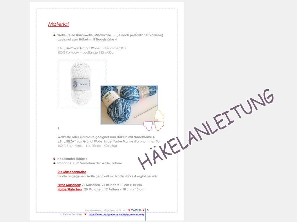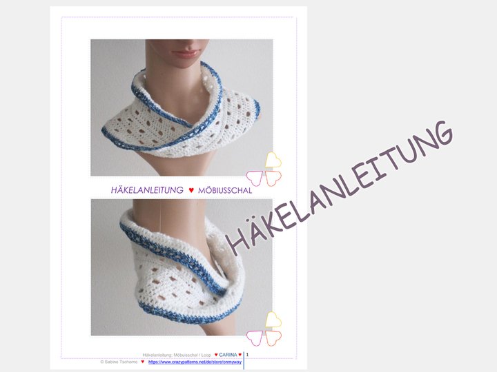 ♥ Wenn Du zum Möbiusschal CARINA passend eine Mütze selber häkeln willst: Die Häkelanleitung für die Beanie Mütze CARINA findest Du in meinem Shop!