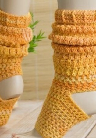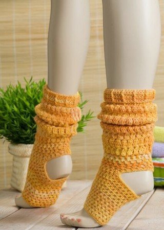 Material: 100 g gelb melierte Sockenwolle 4-fach,LL = 200 m/50 g und 100 g gelb melierte Sockenwolle 6-fach, LL = 130 m/50 g