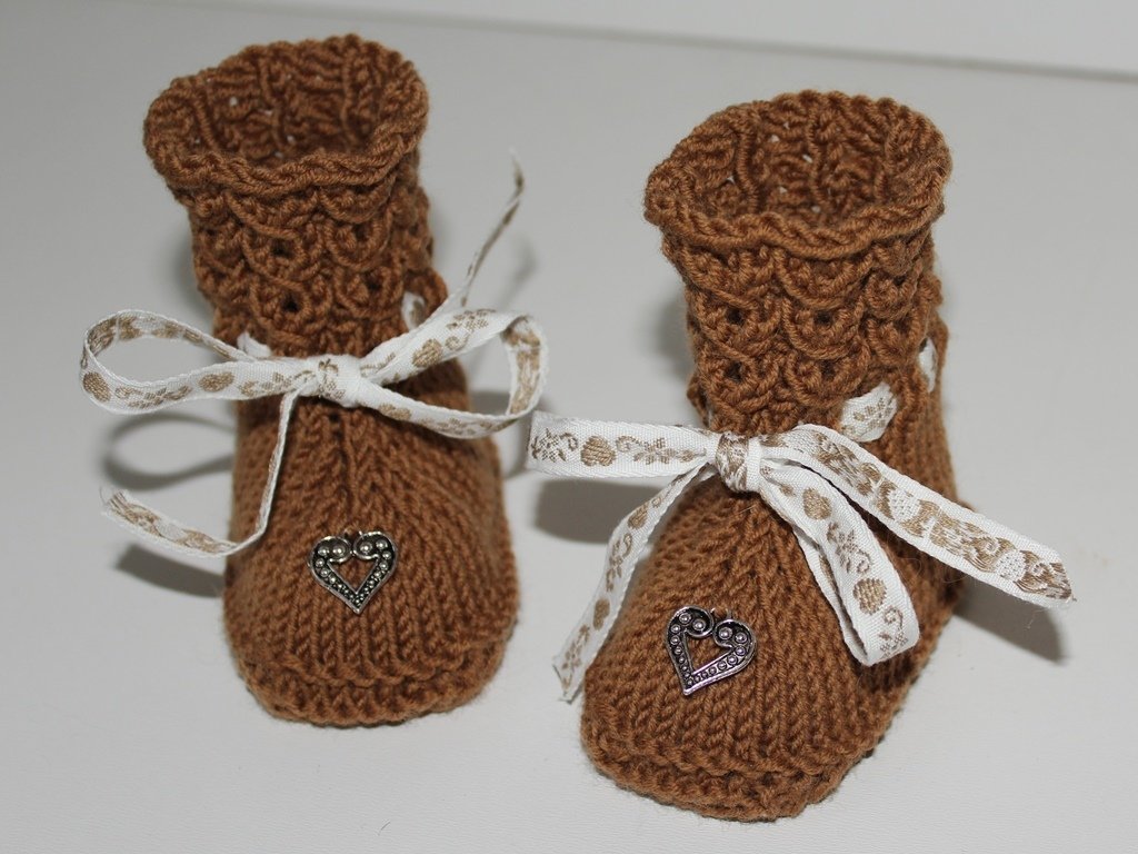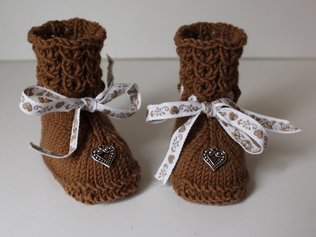 Die Booties sind schnell gestrickt und für Anfänger geeignet, da hier keine Kenntnisse im Zopfstricken benötigt werden.