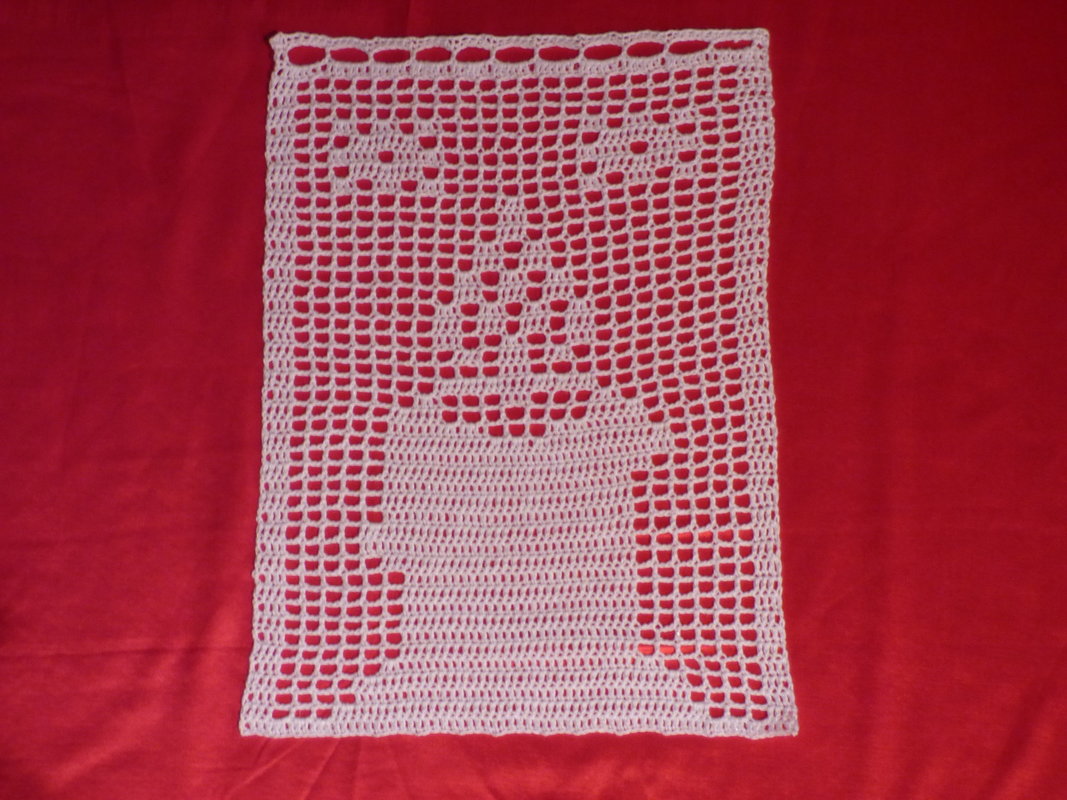 Eine Gardine ist mit dem angegebenen Garn 27cm breit und 38cm hoch und passt so in jedes Fenster.
