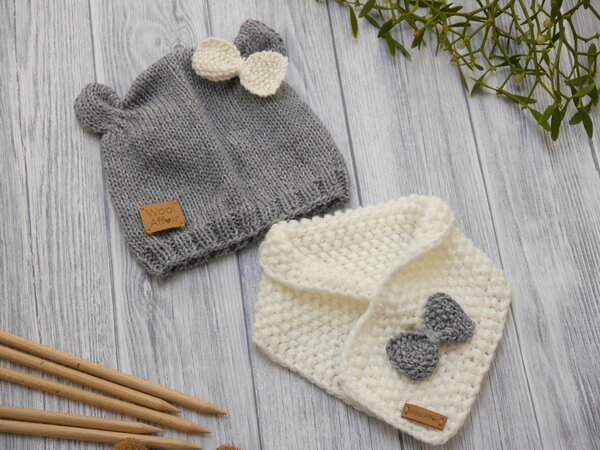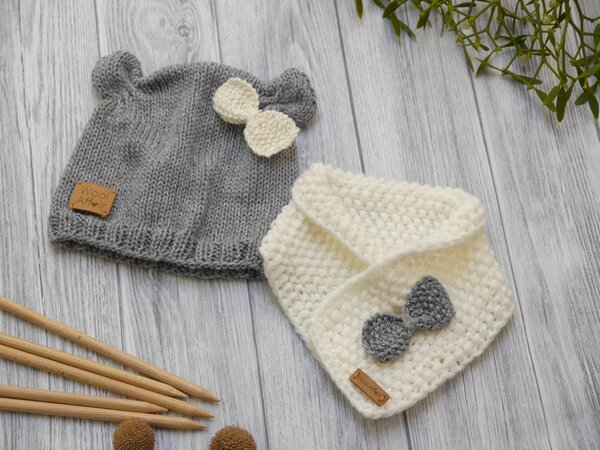 Mit der niedlichen Mütze im Bären-Design und dem süßen Schal mit Schleife genießen die Kleinsten kuschelige Wärme an kühlen Tagen. Die süße Babymütze schützt zuverlässig die Ohren vor Zugluft und Kälte. Zusätzlich noch mit praktischen Bindebänder versehen, wird ein stets einwandfreier Sitz der Erstlingsmütze garantiert. Der praktische Schal kommt komplett ohne Knöpfe oder Bänder aus, die unsere kleinen Knirpse stören oder verschlucken können. Kopfumfang: 34-52 cm