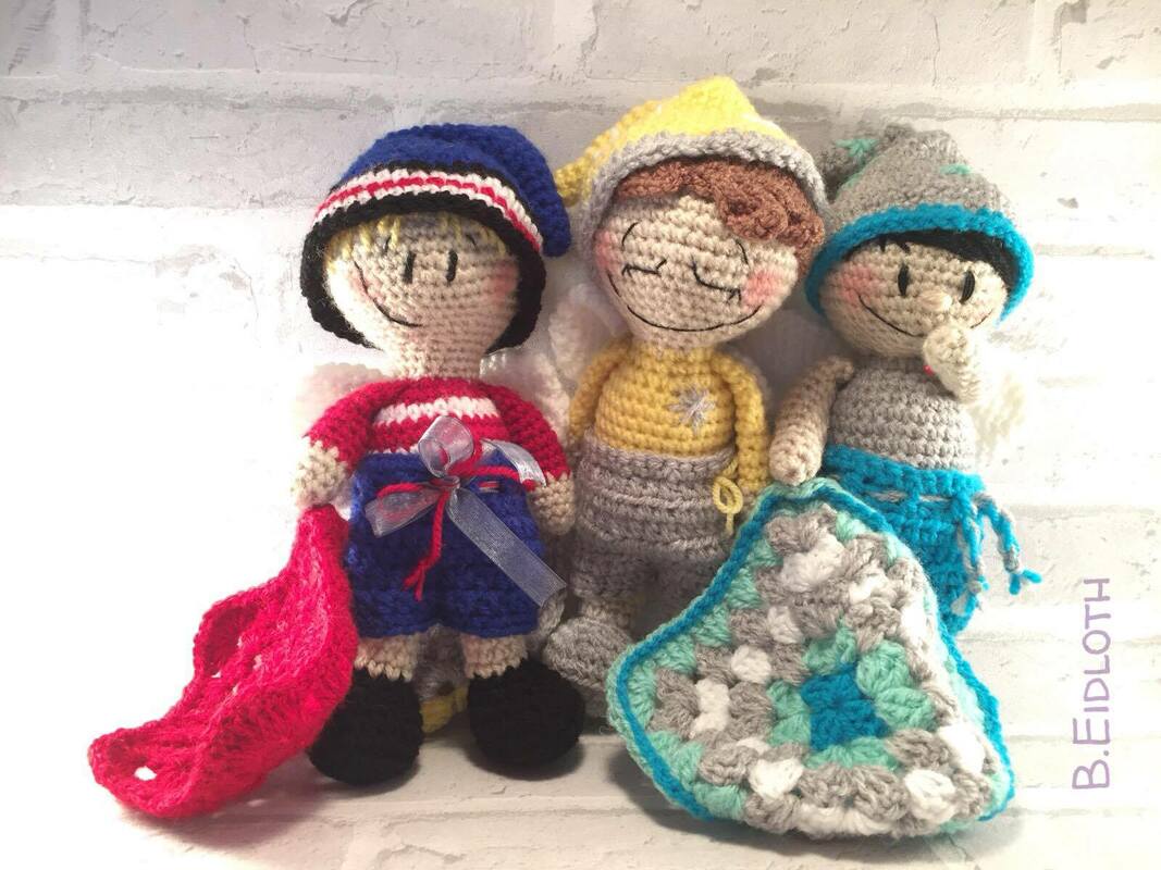 Angelo ist mit der vorgegebenen Wolle ca. 20 cm groß. Dies variiert natürlich je nach Wolle, Nadelstärke und ob du fest oder locker häkelst. Diese Anleitung ist teilweise bebildert...