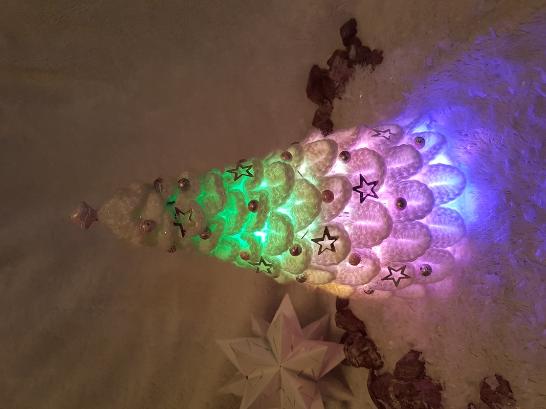 Der Weihnachtsbaum ist 24 cm groß je nach Häkelfestigkeit.