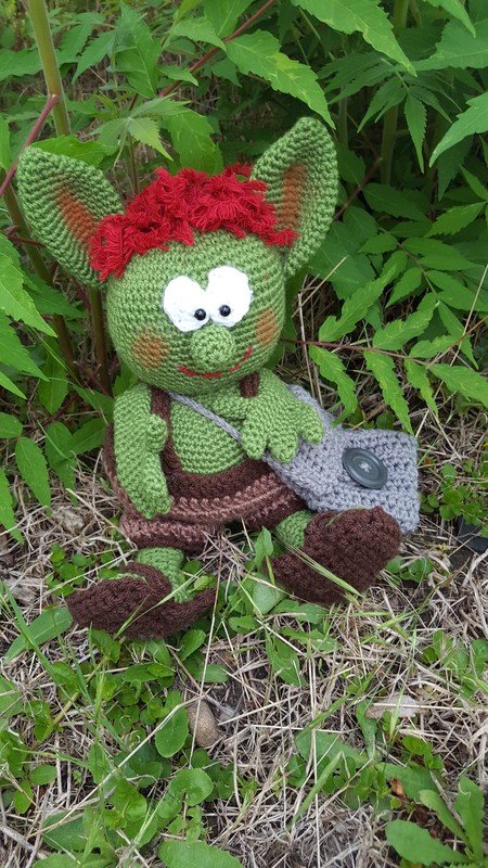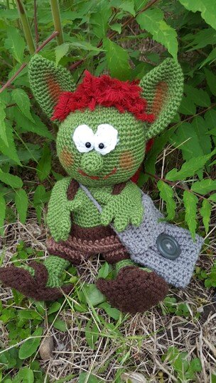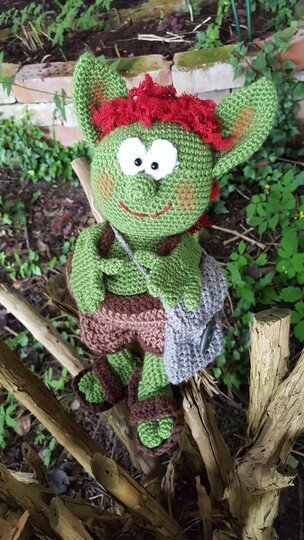 Der kleine Troll Cooper ist ein zauberhaftes kleines Wesen welches man mit Grundkenntnissen des Häkelns (und ein wenig zusammen nähen) selbst erschaffen kann. Der kleine Kerl trägt eine Tasche mit sich in der man wunderbar Geld- und Gutscheingeschenke, oder andere kleine Nettigkeiten verstecken kann. Ich habe ein Polyacrylgarn mit einer Lauflänge von 133 m auf 50 g verwendet (Lisa Premium in grün, braun, hellbraun und grau, außerdem einen Rest weiß und schwarz). Für die stylische Frisur vom kleinen Troll benötigt man ein Fransengarn (No-Name-Garn). Mit ein paar Sicherheitsaugen erhält Cooper noch den Durchblick und zum verschließen der Tasche verwendet man einen schönen rustikalen Knopf. Falls Fragen beim Häkeln entstehen könnt Ihr euch jederzeit gern an mich wenden.