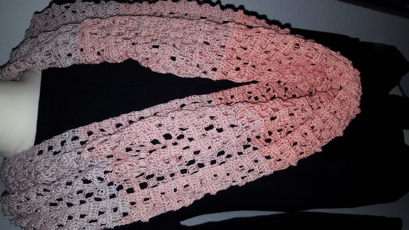 Mit dieser Anleitung könnt ihr einen wunderschönen leichten und stylischen Loop häkeln. Mit Grundkenntnissen im Häkeln ist es jedem möglich sich so ein tolles Accesoire zu zaubern. Ich habe hier 2 x 300 m Woolpedia Colors Peach SL verwendet. Die freundlichen aber gedeckten Farben passen optimal zum Muster und man erhält ein sehr schönes Maschenbild.