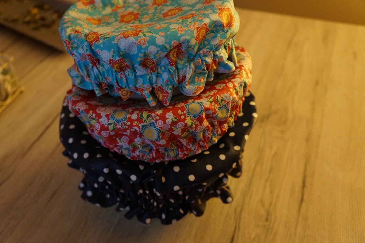 Nähanleitung für eine nachhaltige Haube für Teller, Becher oder Schalen