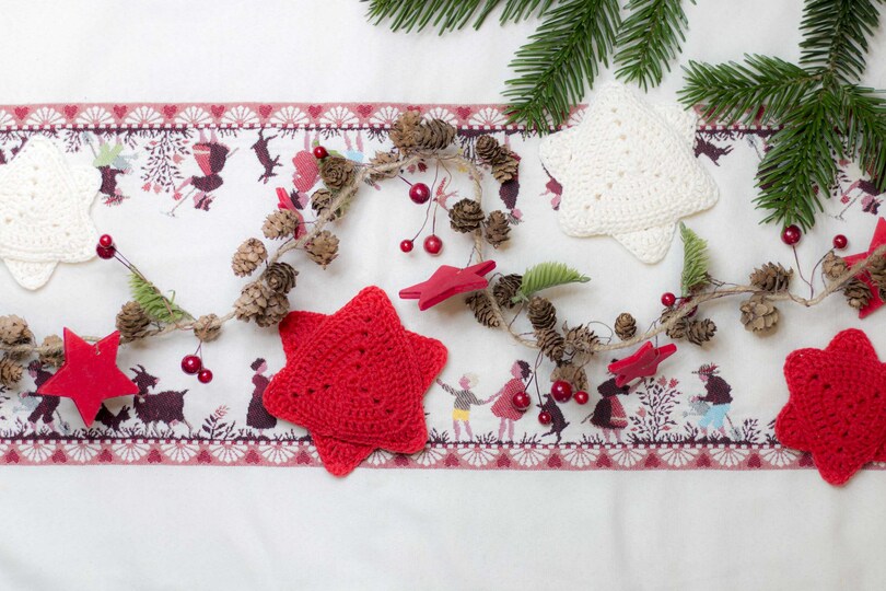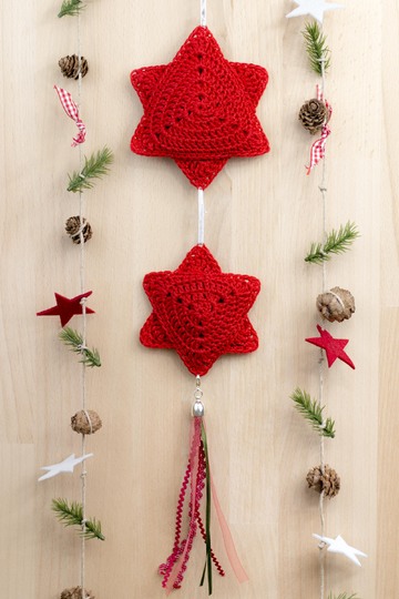 Ich gebe dir die Garne für die Sterne auf den Fotos an, aber du kannst mit einem Garn deiner Wahl häkeln! Du kannst also auch toll Reste verarbeiten!
