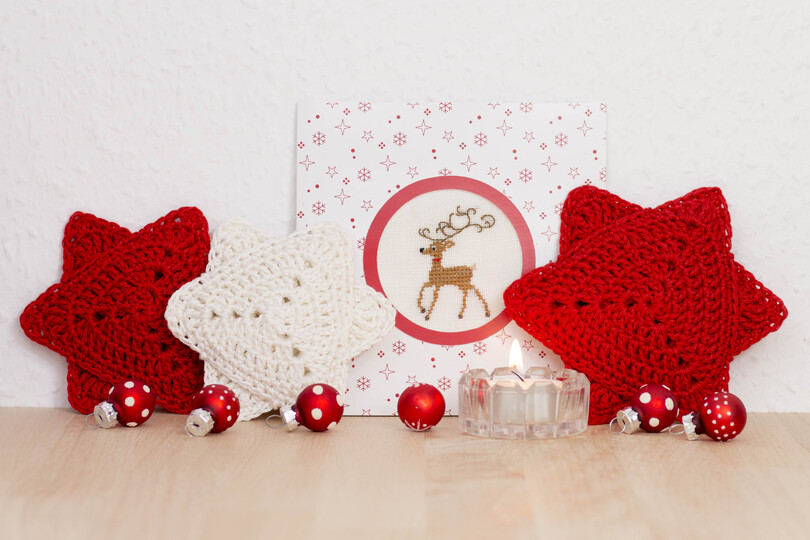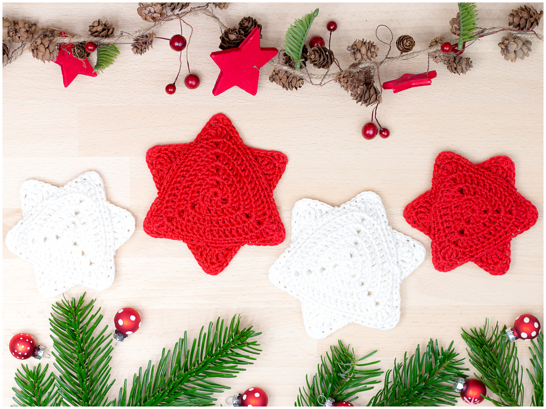 Häkel dir diese wunderschönen Sterne als weihnachtliche Dekoration! Es gibt so viele Möglichkeiten: als Streudeko, einzeln oder als Girlande aufgehängt, als Highlight im Türkranz oder als Christbaumschmuck.