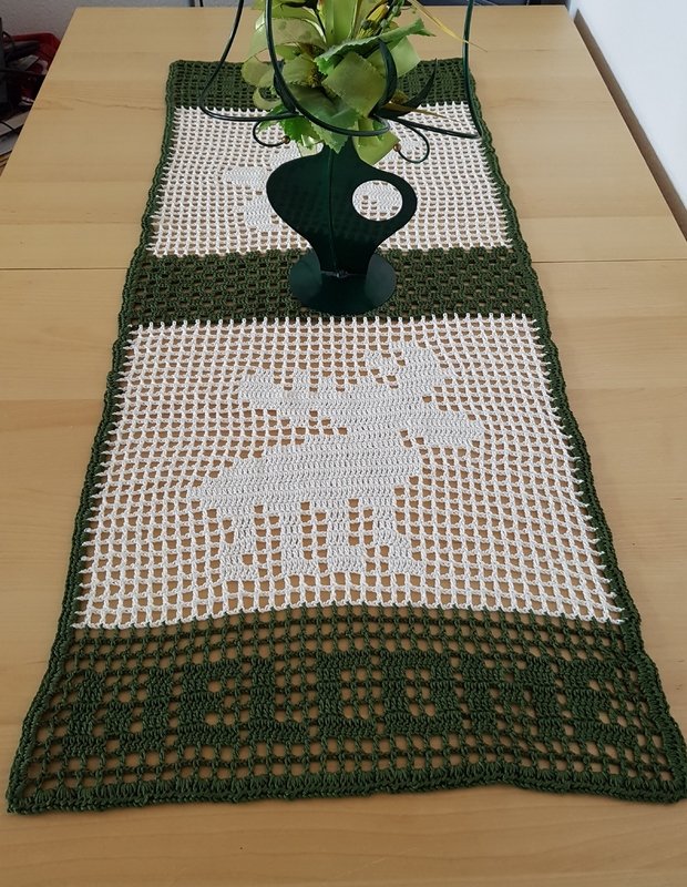 Häkelanleitung für einen schönen Tischläufer mit einem Elchmuster, der in jeden Haushalt passt. :)