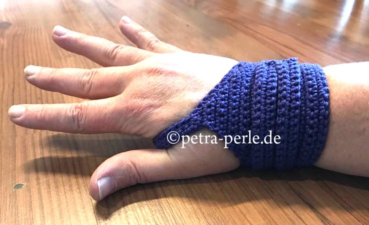 Die gehäkelte Handgelenk Bandage ist sehr angenehm zu tragen und nicht so fest und einschneidend, wie eine Bandage aus Leder und darum sehr gut am schmerzenden Handgelenk!