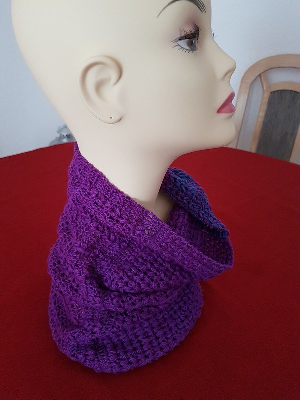 Bei einem 3 fädigen Bobbel und einer Nadelstärke von 3 benötigt man bei einer Höhe von 37 cm ca. 500 m je nachdem wie fest oder locker man häkelt und wie lang und hoch man den Schal/Loop machen möchte. Man kann auch anderes Garn verwenden.
