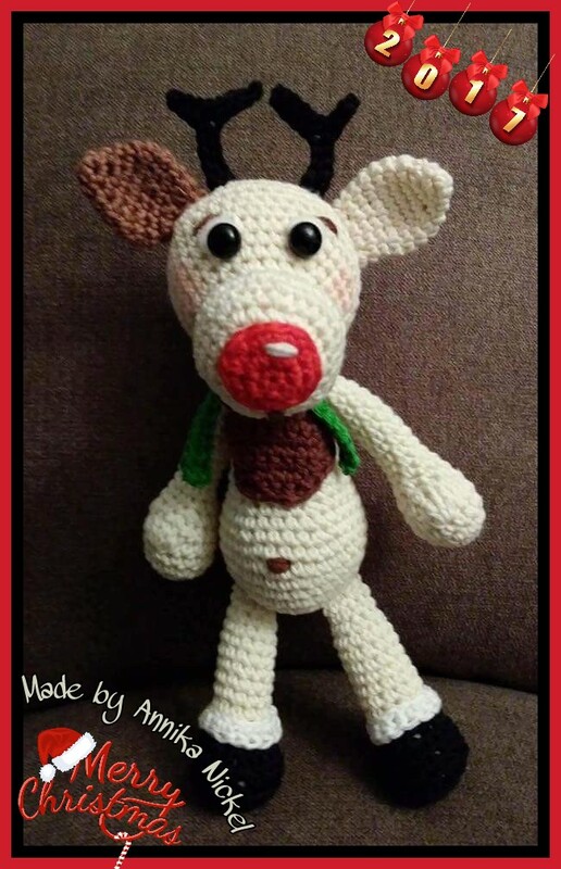 Rick ist mit der vorgegebenen Wolle ca. 24 cm groß. Dies variiert natürlich je nach Wolle, Nadelstärke und ob du fest oder locker häkelst.