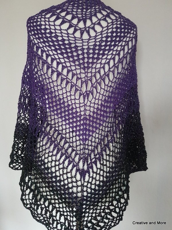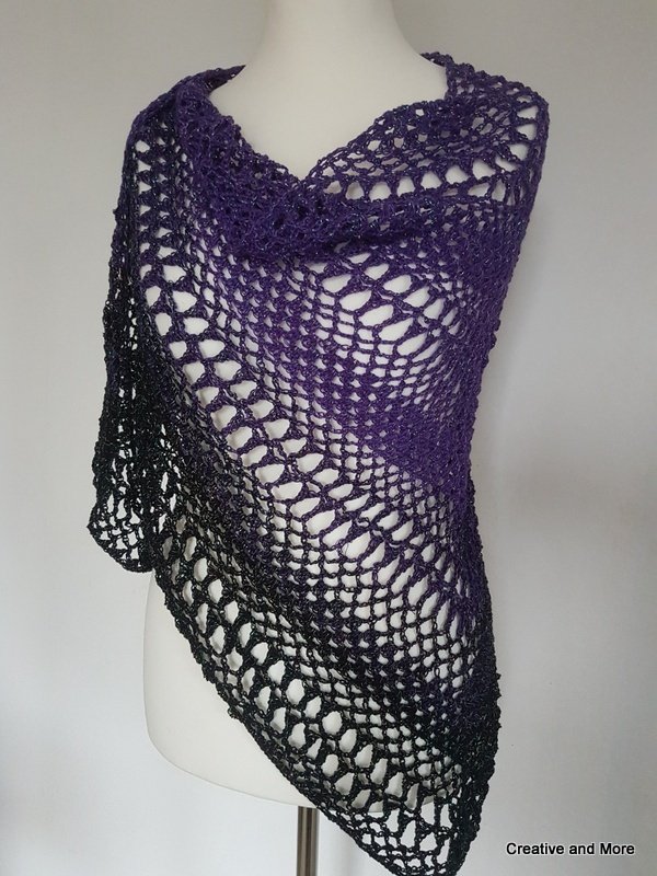 Das Schultertuch "Darkside" kann natürlich auch mit fröhlichen, hellen Farben gehäkelt werden und wird genauso toll aussehen, wie mit dunklen Farben.
