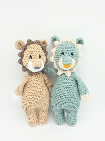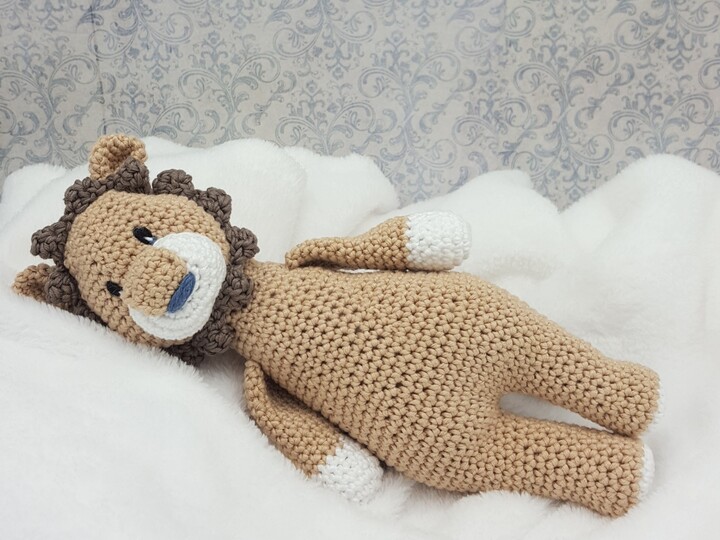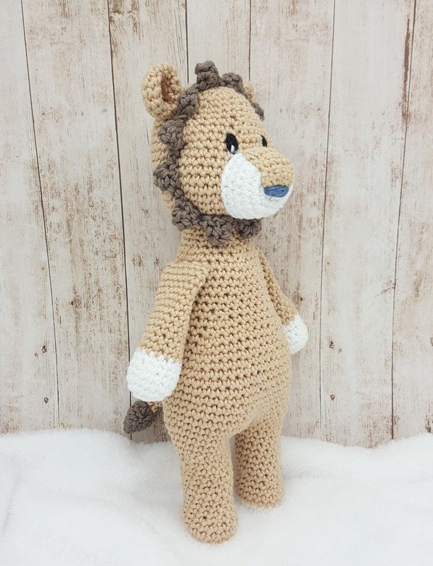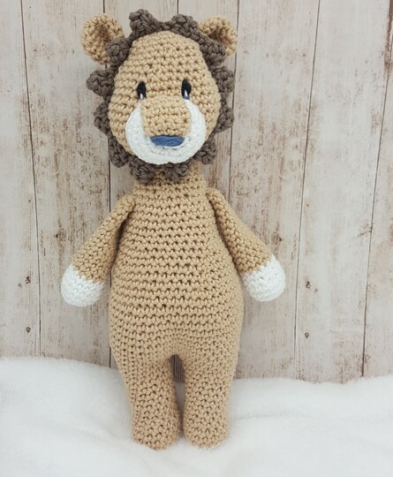 Ich erkläre meine Anleitungen stets ausführlich und versehe sie mit vielen Bildern! Zudem beeinhaltet sie eine Materialliste mit den verwendeten Garnen und Utensilien. Alle Runden und die Maschenanzahl sind natürlich auch aufgeführt. Der Löwe lässt sich in ungefähr 4-5 Std. fertigstellen und ist für Anfänger geeignet.