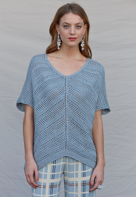 Fließende Silhouette, asymmetrische Form und luftige Lochmusterstreifen: cool! Mit diesem legeren Pulli machen wir in diesem Sommer alles richtig.