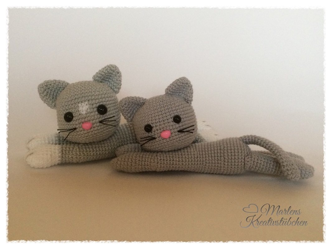 Die Katze auf den Bildern wurde mit einer Wolle 50g/125m und einer Nadelstärke 2,0 gehäkelt.