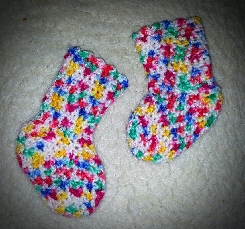 Sehr ausführliche (schriftliche) Anleitung mit vielen Schritt-für-Schritt-Fotos für zuckersüße Baby-Söckchen für Babys im Alter zw. 6-9 Monaten.